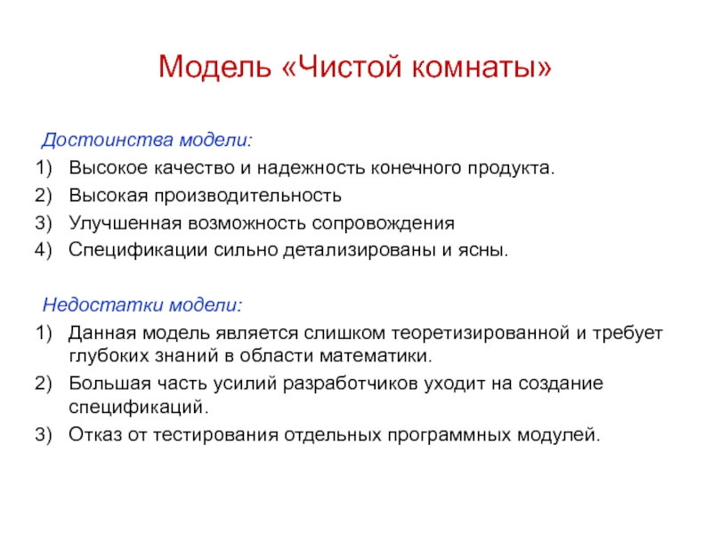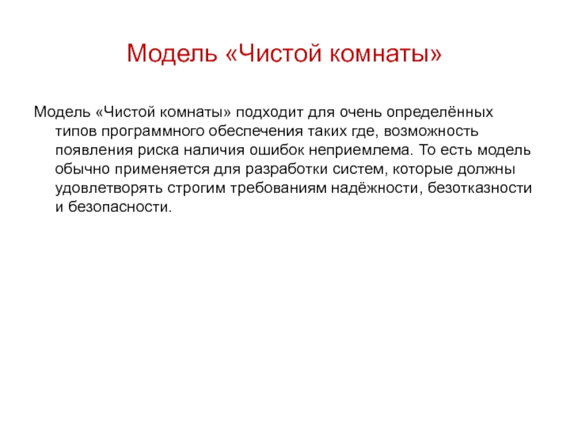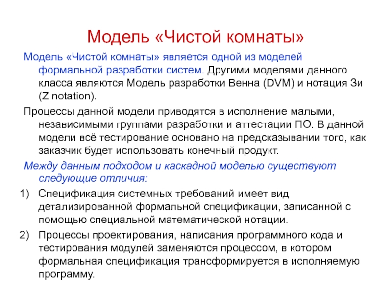 Слайд 17Модель «Чистой комнаты» является одной из моделей формальной разработки систем.