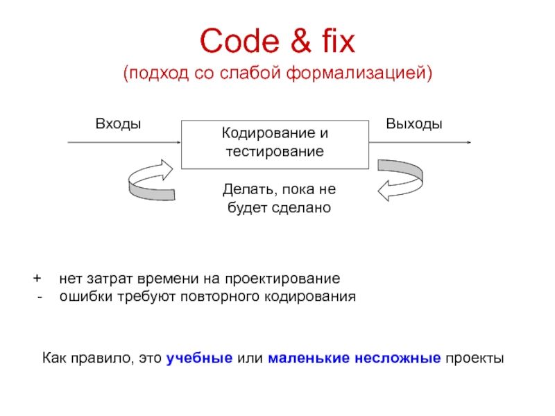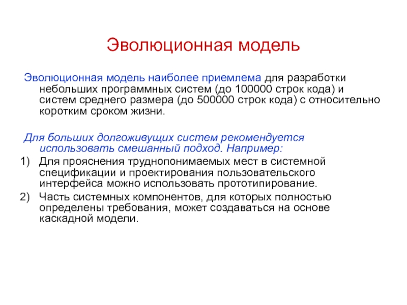 Слайд 15Эволюционная модель наиболее приемлема для разработки небольших программных систем (до