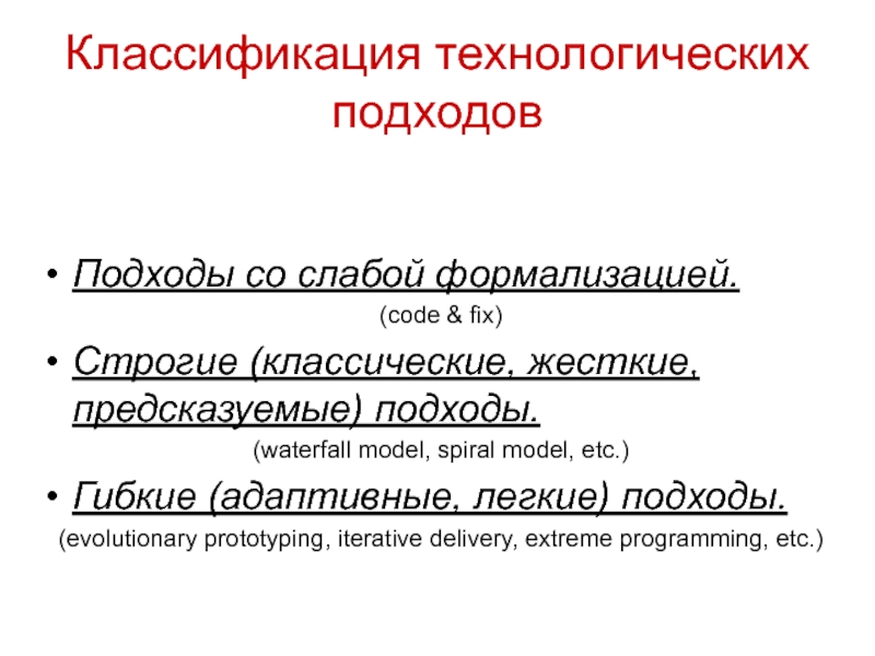 (evolutionary prototyping, iterative delivery, extreme programming, etc.)