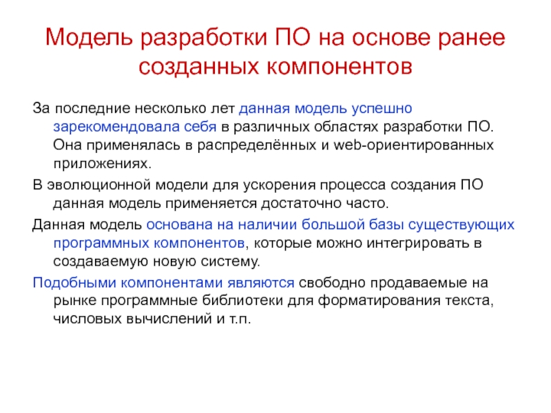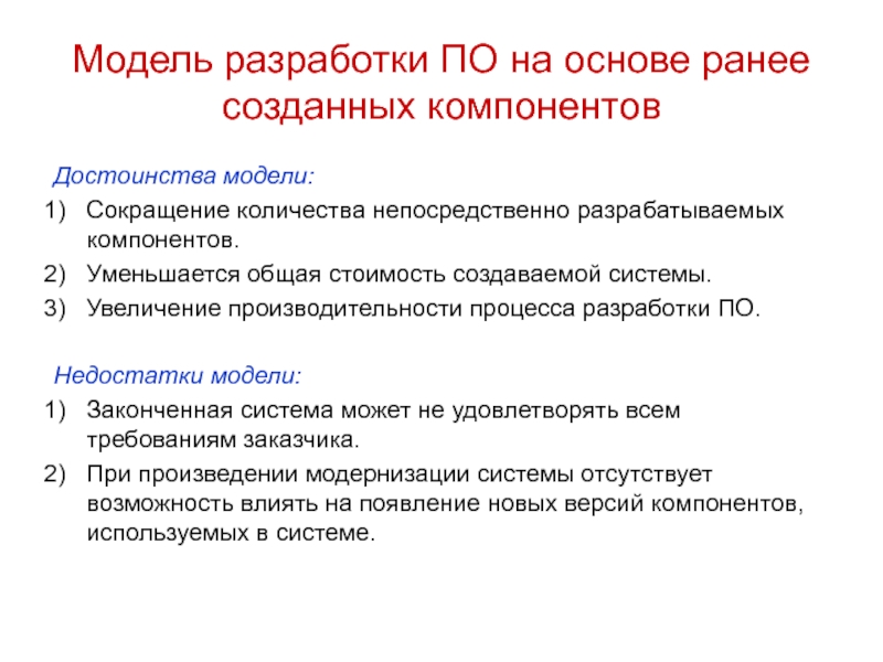 использование модели может оказаться неудачным в случае отсутствия пригодных для повторного использования компонент;
