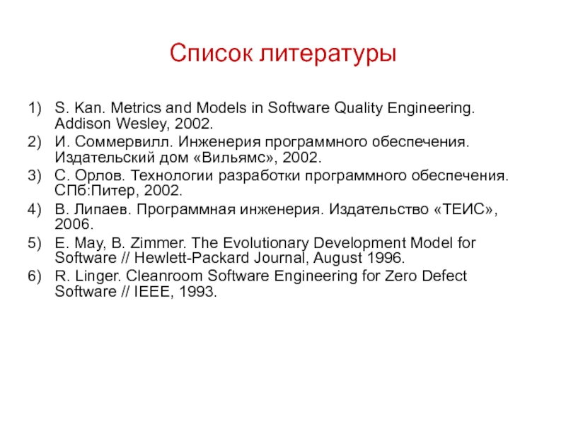 В. Липаев. Программная инженерия. Издательство «ТЕИС», 2006.