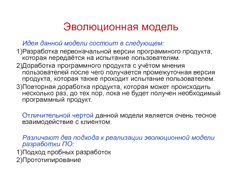 Различают два подхода к реализации эволюционной модели разработки ПО: