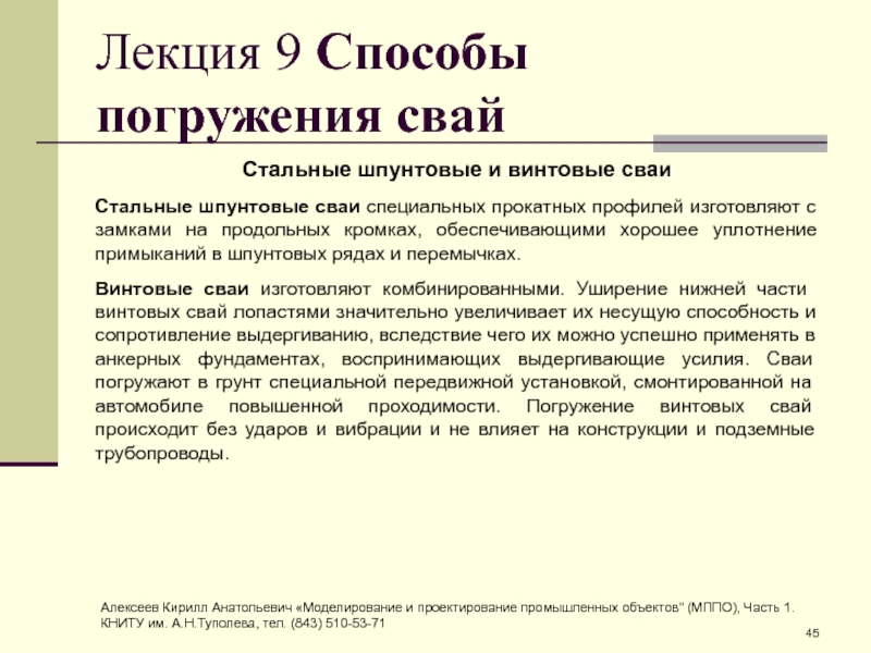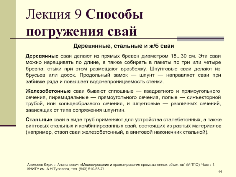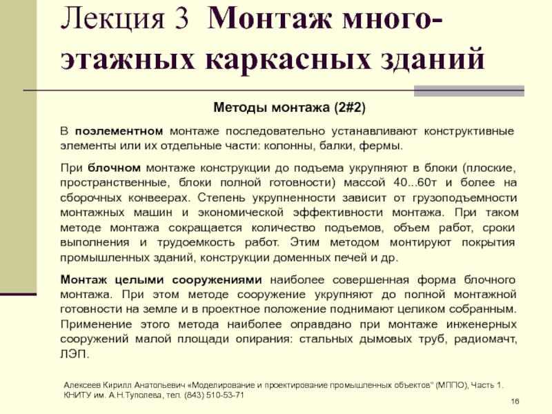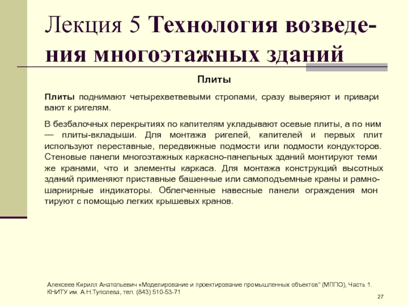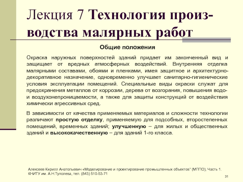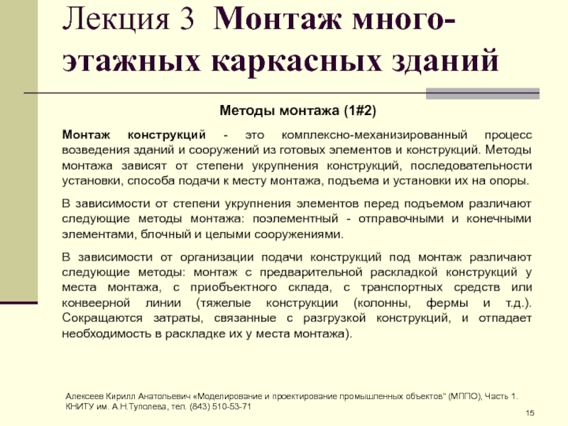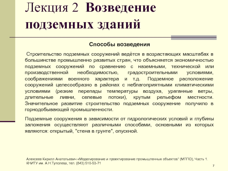 Алексеев Кирилл Анатольевич «Моделирование и проектирование промышленных объектов" (МППО), Часть 1. КНИТУ им. А.Н.Туполева, тел. (843) 510-53-71