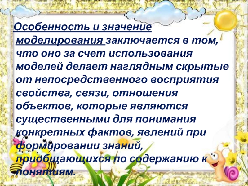 Слайд 5Особенность и значение моделирования заключается в том, что оно за