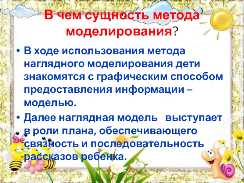 Слайд 7В чем сущность метода моделирования?