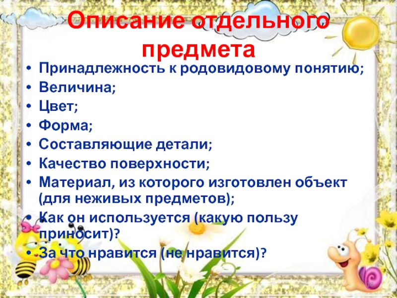 Слайд 18Описание отдельного предмета