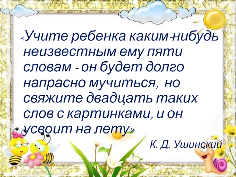 Слайд 2 «Учите ребенка каким-нибудь неизвестным ему пяти словам -