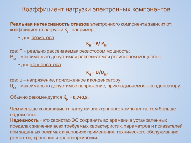 коэффициенты электрической нагрузки электронных компонентов