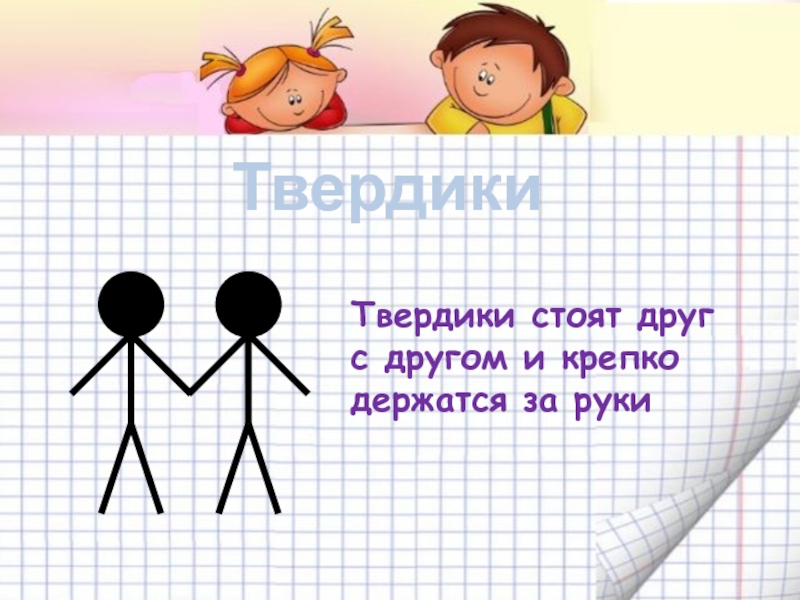 Слайд 5Твердики стоят друг с другом и крепко держатся за руки