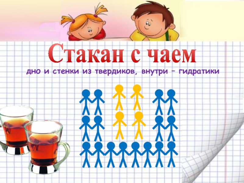 Стакан с чаемдно и стенки из твердиков, внутри – гидратики