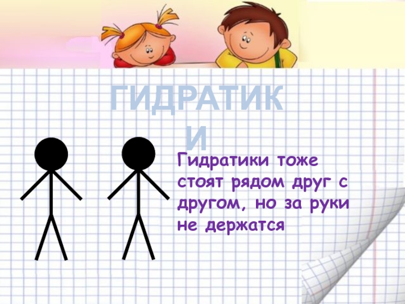 Слайд 6Гидратики тоже стоят рядом друг с другом, но за руки
