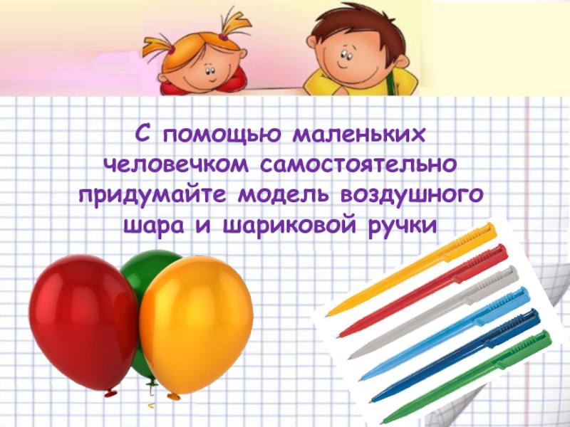 С помощью маленьких человечком самостоятельно придумайте модель воздушного шара и шариковой ручки