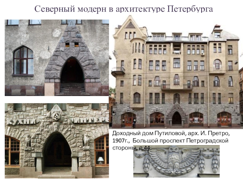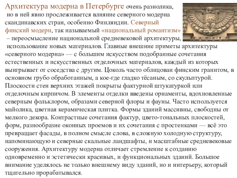 Слайд 2Архитектура модерна в Петербурге очень разнолика,
