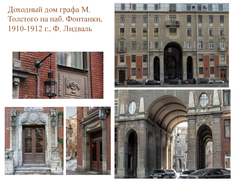 Слайд 9Доходный дом графа М. Толстого на наб. Фонтанки, 1910-1912 г.,