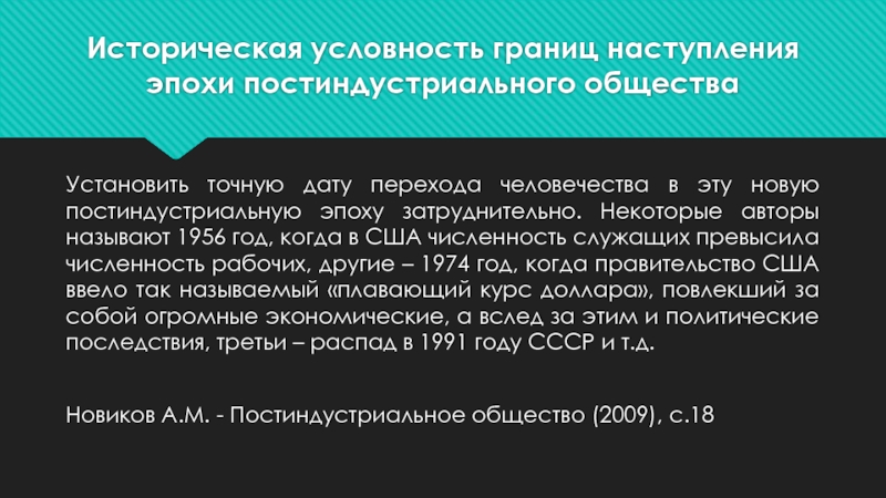 Слайд 13Историческая условность границ наступления эпохи постиндустриального общества