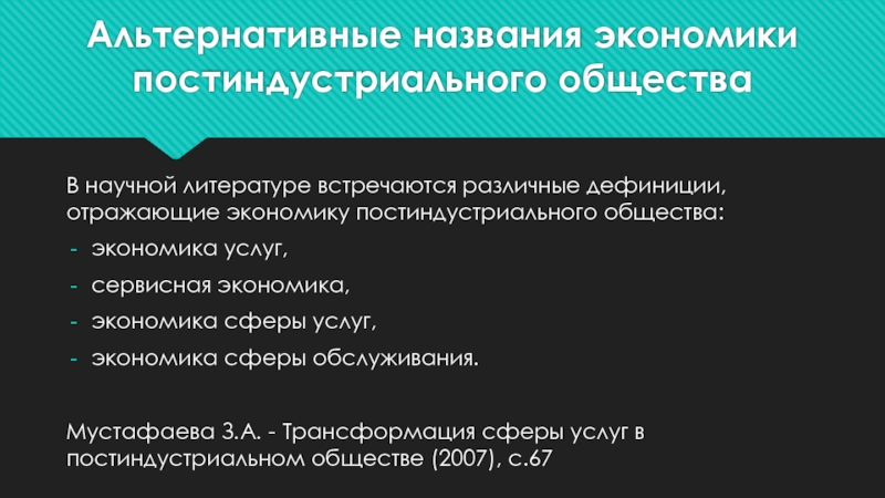 Мустафаева З.А. - Трансформация сферы услуг в постиндустриальном обществе (2007), с.67