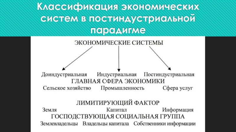 Слайд 16Классификация экономических систем в постиндустриальной парадигме