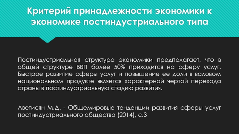 Слайд 22Критерий принадлежности экономики к экономике постиндустриального типа