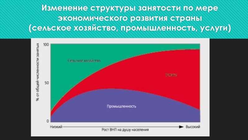 Слайд 17Изменение структуры занятости по мере экономического развития страны