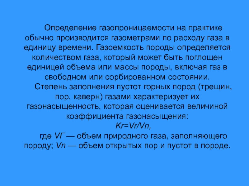 в единицу времени. Газоемкость породы определяется количеством газа, который может