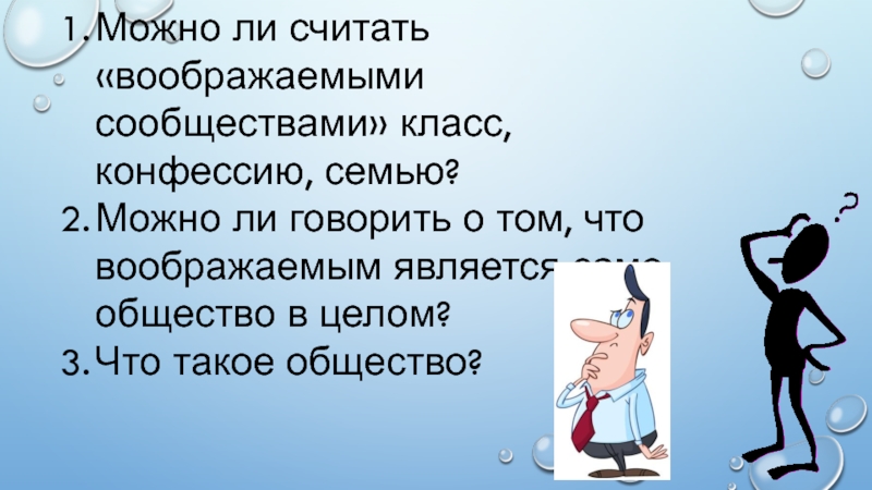 Слайд 14Можно ли считать «воображаемыми сообществами» класс, конфессию, семью?