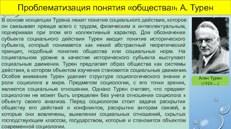 Слайд 16Проблематизация понятия «общества»: А. Турен