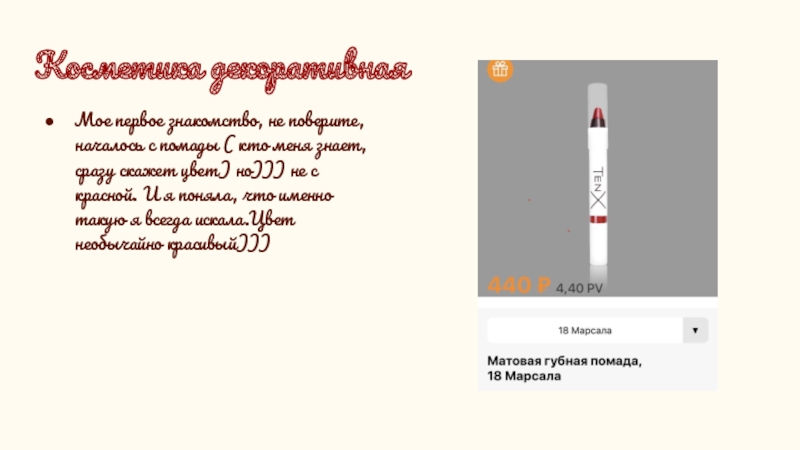 Косметика декоративнаяМое первое знакомство, не поверите, началось с помады ( кто меня знает, сразу скажет цвет) но)))