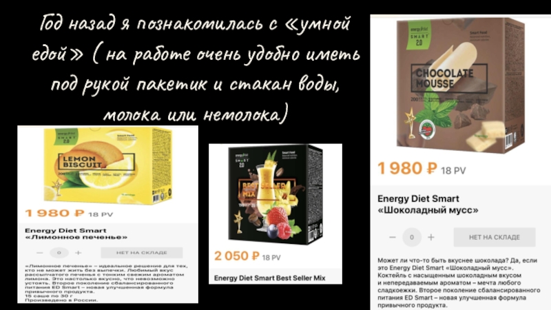 Слайд 6Год назад я познакомилась с «умной едой» ( на работе