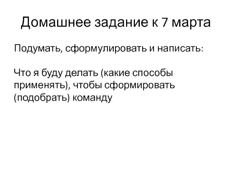 Домашнее задание к 7 мартаПодумать, сформулировать и написать:Что я буду делать (какие способы применять), чтобы сформировать (подобрать)