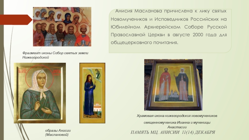 Анисия Масланова, мученица (†1937, память 1/14 декабря)