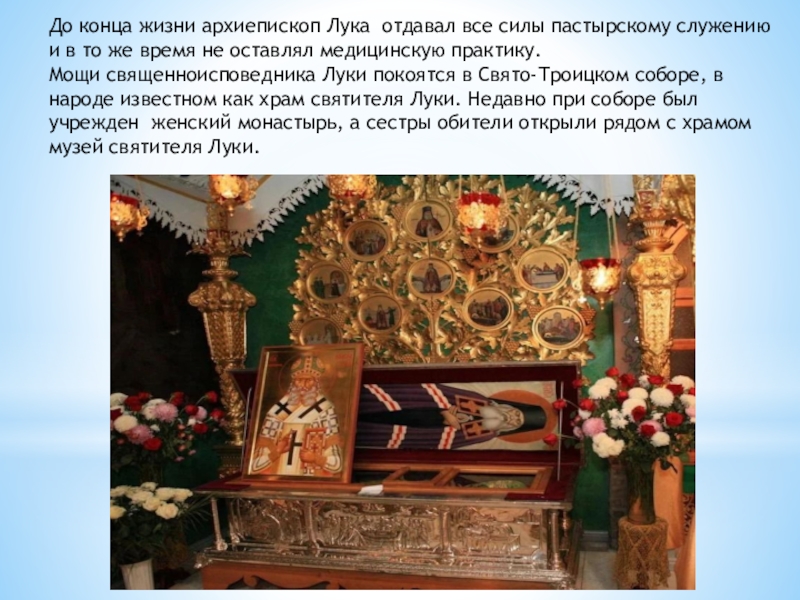 Слайд 12До конца жизни архиепископ Лука отдавал все силы пастырскому служению