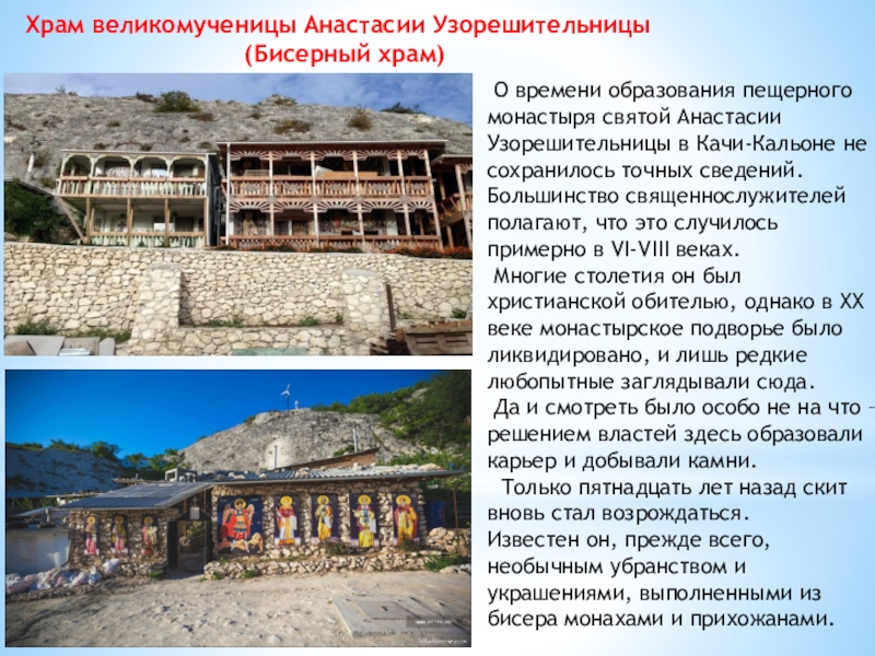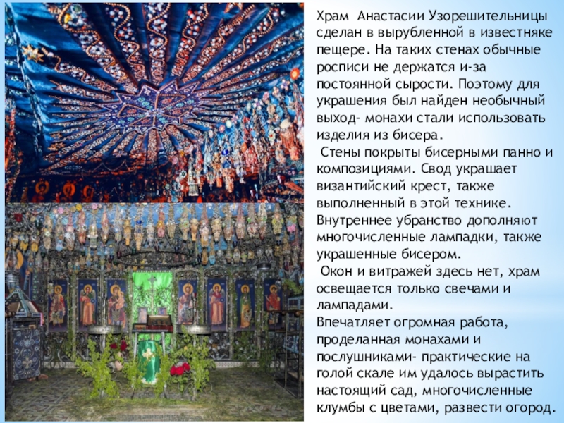 Слайд 23Храм Анастасии Узорешительницы сделан в вырубленной в известняке пещере. На