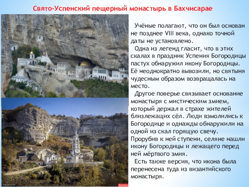 Слайд 13Свято-Успенский пещерный монастырь в Бахчисарае