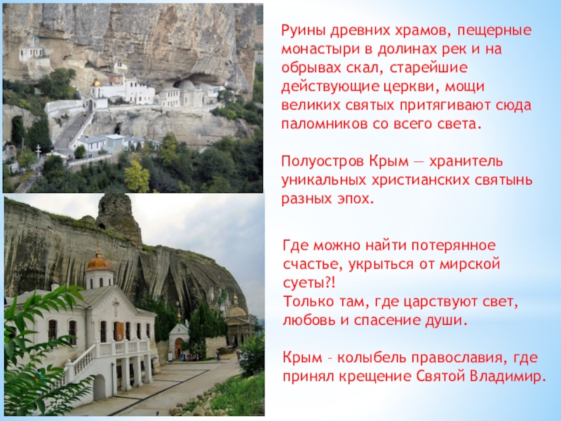 Полуостров Крым — хранитель уникальных христианских святынь разных эпох.