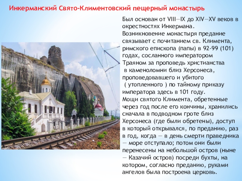 Слайд 18Инкерманский Свято-Климентовский пещерный монастырь