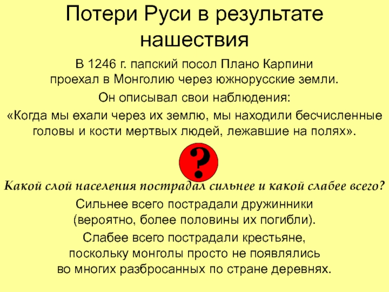 Монголы положили на пленных бревна, а сами, сидя сверху, пировали под предсмертные стоны задавленных.