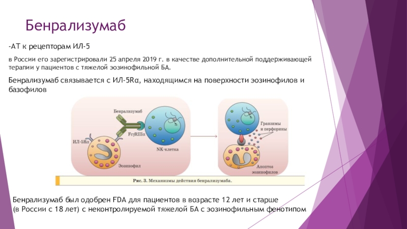 Бенрализумаб связывается с ИЛ-5Rα, находящимся на поверхности эозинофилов и базофилов