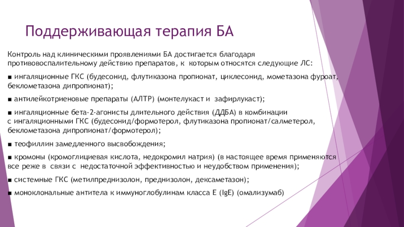 Контроль над клиническими проявлениями БА достигается благодаря противовоспалительному