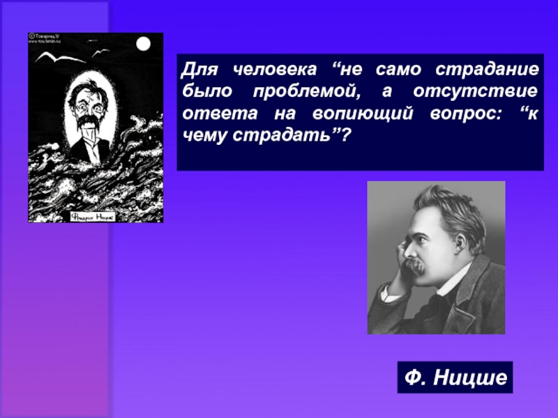 Слайд 18Для человека “не само страдание было проблемой, а отсутствие ответа