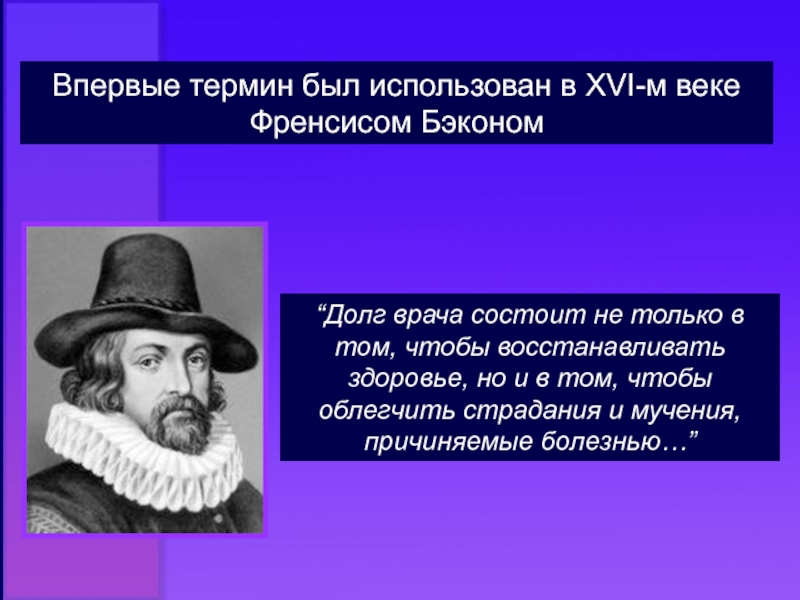 Слайд 5Впервые термин был использован в XVI-м веке Френсисом Бэконом