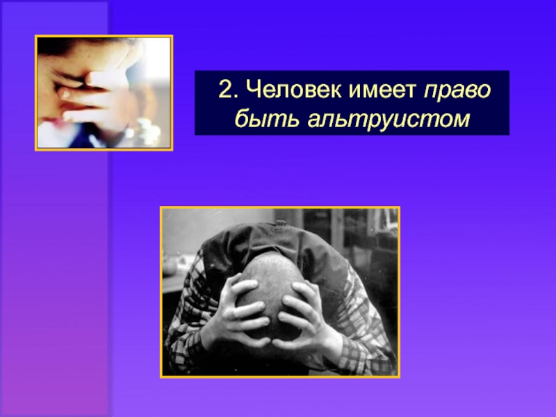Слайд 12 2. Человек имеет право быть альтруистом
