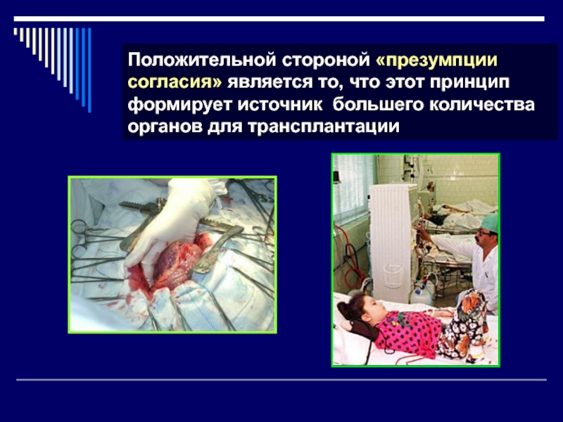 Слайд 42Положительной стороной «презумпции согласия» является то, что этот принцип формирует