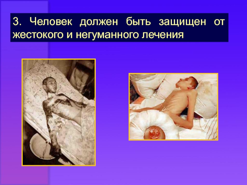Слайд 133. Человек должен быть защищен от жестокого и негуманного лечения