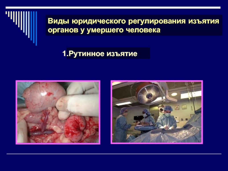 Слайд 39Виды юридического регулирования изъятия органов у умершего человека