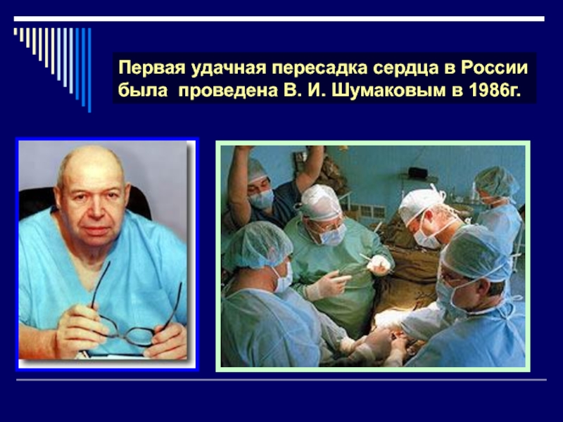 Слайд 32Первая удачная пересадка сердца в России была проведена В. И.