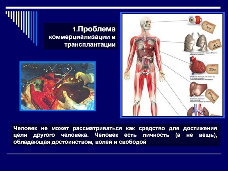 Слайд 351.Проблема коммерциализации в трансплантации