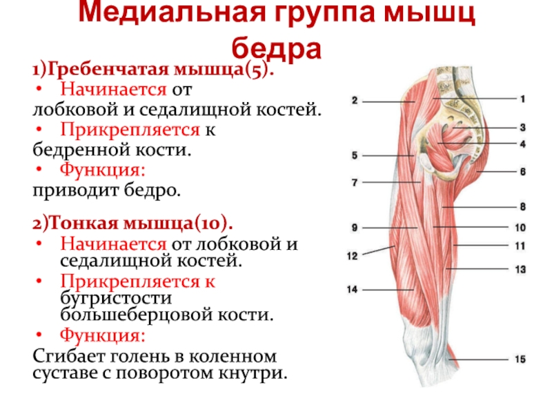 линии бедренной кости, от большого вертела, от передней поверхности бедренной кости.