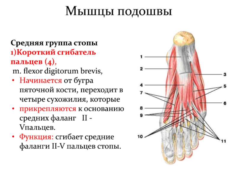 Функция: сгибает средние фаланги II-V пальцев стопы.