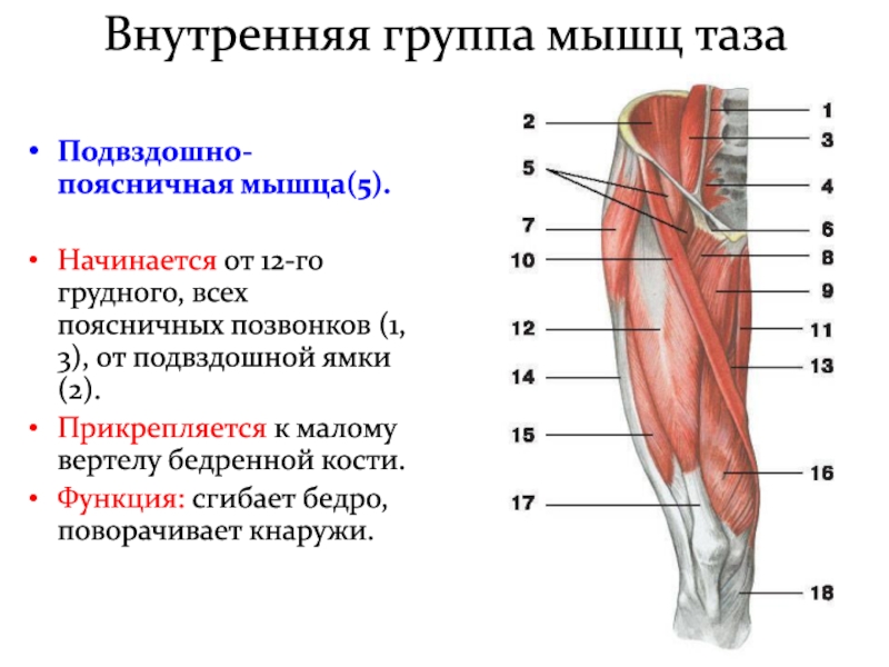 поясничных позвонков (1, 3), от подвздошной ямки (2).