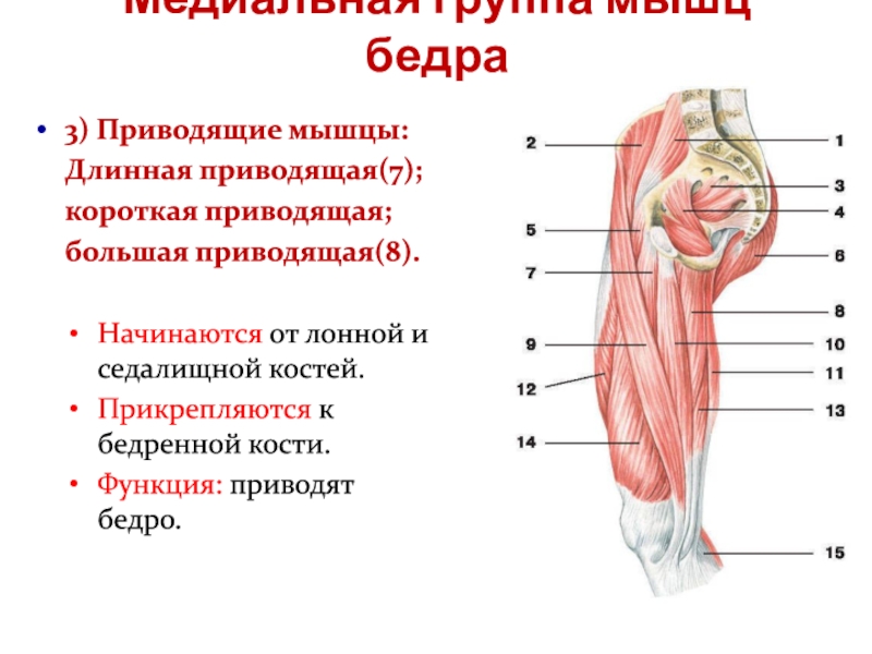 седалищного бугра, от латеральной губы шероховатой линии бедра.